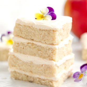 This easy apple cake is so easy to make. It’s just 3 ingredients and doesn’t contain any eggs, butter or oil, but you won’t miss them at all. The cake is very moist and soft. You don’t even need a mixer to make the batter. This cake is perfect for dessert or served with afternoon tea or coffee.