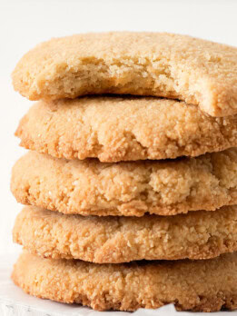 These cookies are not super sweet on their own. They are about the level of sweetness of a biscuit cookie or shortbread cookie. If you prefer sweeter, you can add sugar free chocolate chips, drizzle them with chocolate, or dust them with powdered sweetener (like powdered Swerve or powdered erythritol).