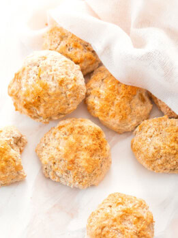 This satisfies my craving for bread without the empty-calories carbs! I would send pictures, but I always eat these too fast. 🙂 Two things to mention – first, I don’t shape them nicely. I leave them lumpy, and enjoy the crispy peaks and valleys. Second, I don’t like to use blenders/dough attachments if I don’t have to, and a single batch of these seems hardly worth the cleanup for those items. I use a dough cutter which works beautifully on this! It cuts all of the ingredients together easily, makes it easier to tell when the dough is thoroughly blended (it pushes off the cutter easily), and cleans up quickly. The only problem with these rolls is how quickly I can eat them – so I share them with my neighbors, who also love them. These rolls convinced me to keep self-rising flour in the house! Thanks for these great, easy recipes.