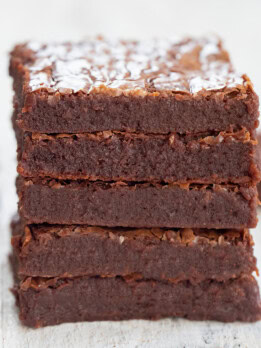 These incredibly easy brownies are perfect when you need a quick brownie recipe with minimal ingredients. They look and taste just like regular brownies but you only need 2 ingredients to make them. The brownies don’t need flour, butter or oil. The brownies come out fudgy with shiny crinkly tops.