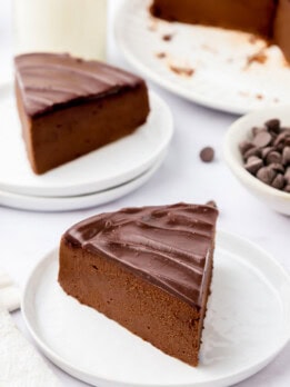 - Dark chocolate chips: For this recipe, I recommend dark chocolate chips between 60% to 70% cocoa. I used 63% cocoa. If you use chocolate with too little cocoa, the cake may not set.