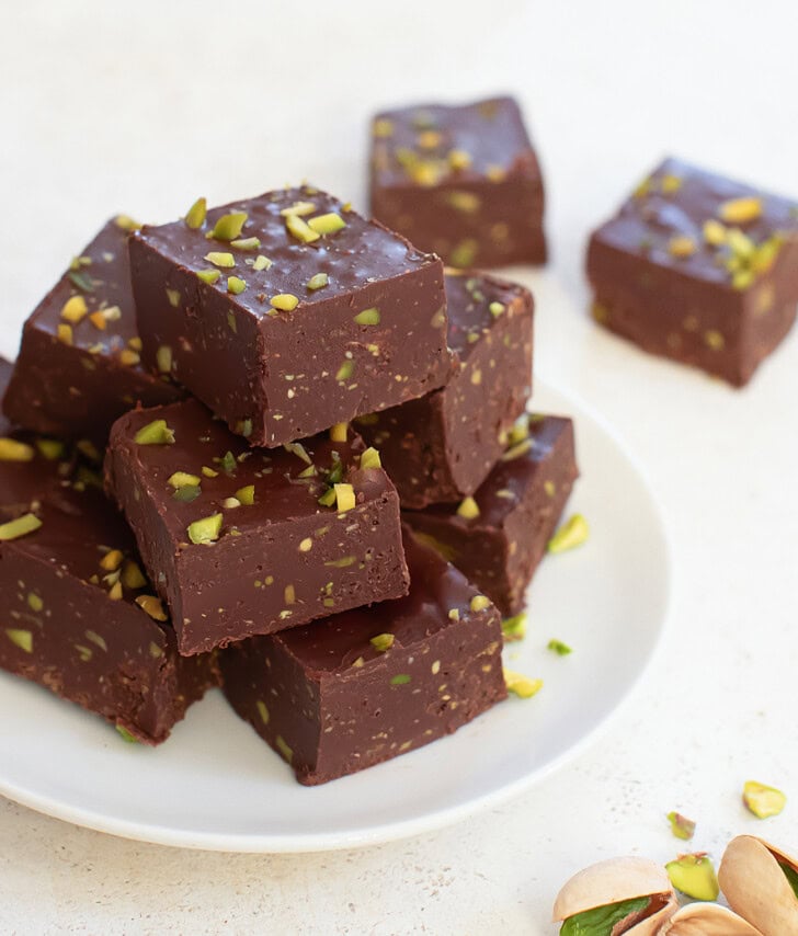 If desired, you can also garnish the top with finely chopped pistachios. You can also stir in some finely chopped pistachios for more texture in your fudge but if you prefer a creamier fudge, you don’t need to add pistachios pieces to the fudge.