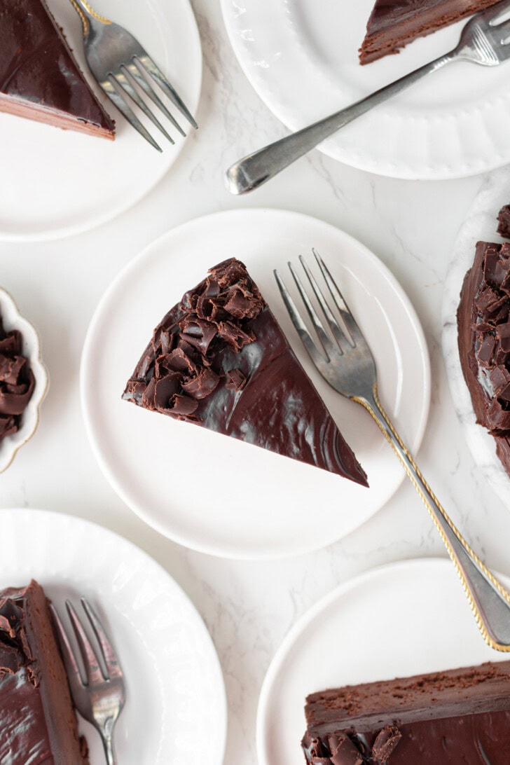 This cake has a texture similar to a chocolate torte cake. It is rich, soft and creamy. It is not super sweet because it is sweetened with just dark chocolate.