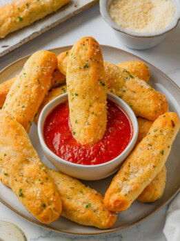 - The breadsticks have a lot of flavor on their own but you can also serve them with some marinara dipping sauce.