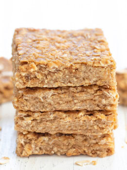 I am always trying to find new ways to serve oatmeal to my family. These apple oatmeal bars are so quick and easy to make. I like to keep a batch in the fridge or freezer for a quick breakfast or snack.