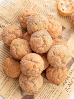 - Optional Cinnamon Sugar Coating: For the coating, I mixed 2 (heaping) tbsp sugar + 1/2 tsp cinnamon and put it into a Ziploc bag. You can also use 2 tablespoons of cinnamon sugar mix (like McCormick's cinnamon sugar). Put a few donut holes in the bag, seal the bag, and shake the donuts until they are coated in cinnamon sugar. Repeat the process with the remaining donuts. I find that the donuts coat better if you allow them to fully cool. I baked mine the night before and coated them in the morning before serving.