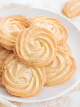 I love eating butter cookies, especially this time of year and I can never resist buying a few tins of Danish butter cookies. But most of the time I’m actually disappointed with the ones I buy. These homemade butter cookies taste so much better. They are so crispy, buttery and have just the right amount of sweetness.