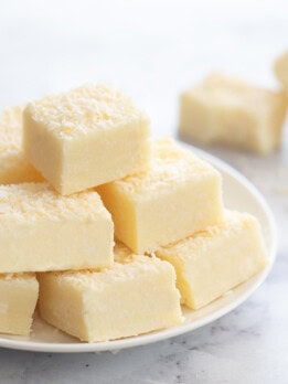 Unsweetened coconut: The fudge is mixed with unsweetened shredded coconut. Because the fudge is quite sweet, I recommend using unsweetened rather than sweetened.