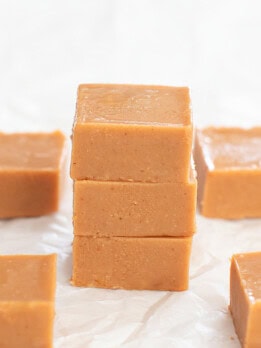 This healthier peanut butter fudge is so smooth and creamy. It only needs 3 ingredients and doesn’t contain any refined sugar, dairy or butter. You also don’t need to cook the fudge.