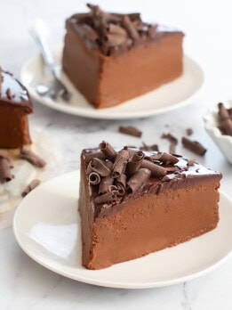 This chocolate cake has such a smooth and silky texture, like a chocolate mousse cake. It is best served cold, which makes it a great dessert to make in the summer.
