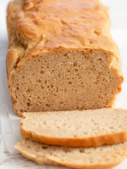 I love how quick and easy this bread is. It has a texture similar to traditional bread made with yeast. It can be eaten as is, or toasted, or with your favorite spread.