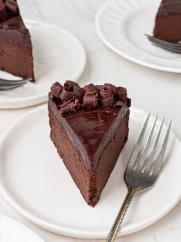 This cake has a soft and fudgy texture. It doesn’t have the crumb of a classic chocolate cake made with flour but it does still have a cake-like texture. The cake is only lightly sweet since this is meant to be a healthier chocolate cake. You can add more sugar to the batter or use a sweet frosting if you prefer your cake to be sweeter.