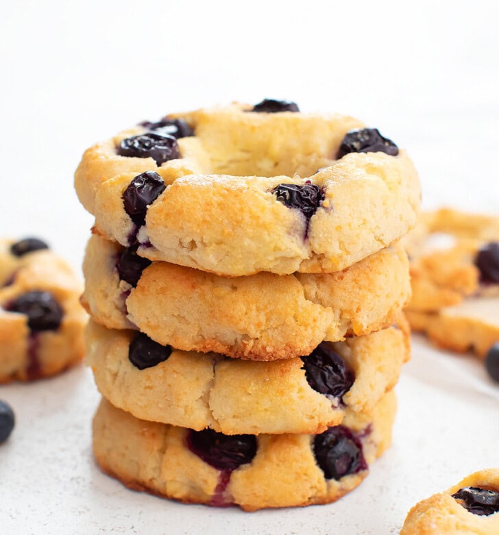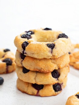 These blueberry bagels are low carb, high protein and keto-friendly. They only need 4 ingredients. The bagels are soft and tender with bursts of blueberry in each bite.