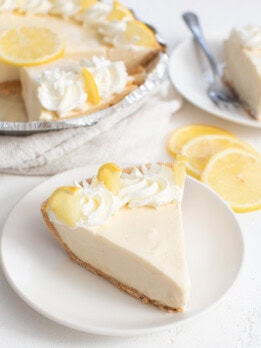 This no bake lemon cheesecake is creamy and smooth. The cheesecake needs just 4 ingredients and doesn’t require any baking or cooking. The cheesecake has a zesty lemon flavor and is a refreshing dessert that can be made ahead of time.