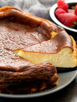 This unique looking cheesecake has become very popular recently. The cheesecake is creamy and light with a caramelized surface. It is also much easier to make than traditional cheesecake and hard to mess up.