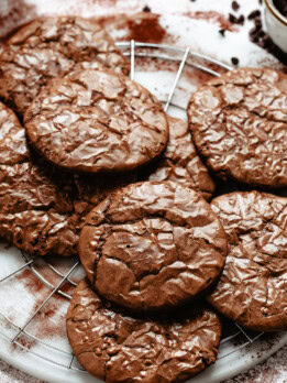When you can’t decide between making brownies or cookies, these chocolate brownie cookies are the answer. These cookies are rich, chocolatey, with a shiny crackly brownie exterior. They will satisfy your chocolate cravings.