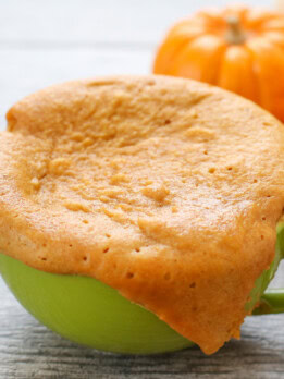 This peanut butter mug cake with pumpkin is fluffy and moist and completely flourless. It’s easy to make in just a few minutes.