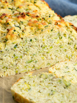 This savory garlic parmesan zucchini bread is a low carb keto bread recipe that’s easy to make. It’s a great way to use up summer zucchinis and works well for sandwiches, toast, and more.