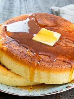 This is an Instant Pot version of the popular Japanese rice cooker pancake, so please do not expect it to taste like American pancakes or flapjacks. Rice cooker pancakes are very thick, with a tight crumb giving them a slightly chewy texture. And they have a crispy top and are sweeter than traditional pancakes.