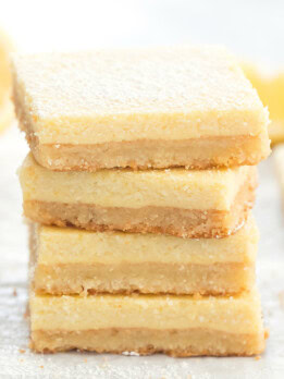 TheΒ lemon fillingΒ is also easy and has the best texture and lemonΒ flavor. I use superfineΒ almond flourΒ to give the creamy filling stability – that way it doesn’t ooze and the bars are easy to slice.