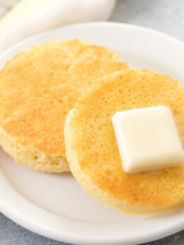 Make sure to use superfine blanched almond flour. Regular almond meal or flour will not yield the same result. If you are looking for a nut-free version or want to use coconut flour instead, please check out my low-carb paleo English muffin recipe which uses coconut flour.