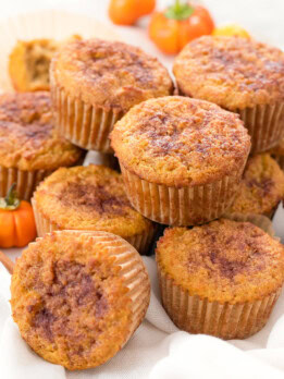 These pumpkin snickerdoodle muffins are fluffy, moist, and taste like snickerdoodles in muffin form. The muffins are topped with a cinnamon sweetener coating and have a tangy flavor just like snickerdoodles. Plus the muffins are low carb, gluten-free and keto-friendly.