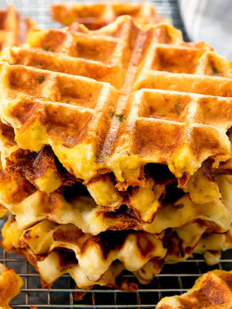 If you don’t want to deal with shaping and frying mashed potato tots, these mashed potato waffles are an easy recipe for leftover mashed potatoes. Your waffle iron does most of the work and it’s a fun way to enjoy mashed potatoes.