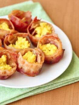 These are perfect for an on-the-go breakfast or for brunch. They are deceptively small but each cup consists of one strip of bacon so careful not to overindulge!