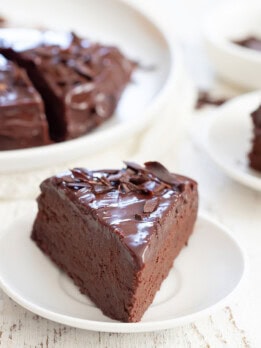 This cake is creamy, almost like a cheesecake texture. It is very rich and decadent.