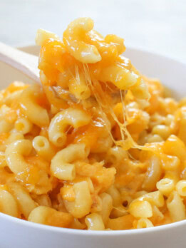 [Update! If you own an Instant Pot or similar pressure cooker, I’ve successfully made an Instant Pot one pot macaroni and cheese. It comes out super creamy and perfectly cooked. It’s my favorite way to make macaroni and cheese!]