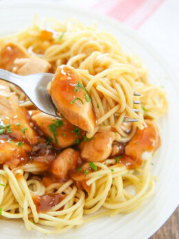 You know how sometimes you fall in love with a sauce so much that you want to use it on everything? Dip stuff in it, spread it toast, eat it by the spoonful. So I was eating orange chicken the other day and thought, why not use it as a pasta sauce?
