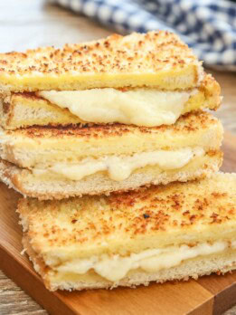 Last week I made Crunchy French Toast by coating the bread in panko breadcrumbs, which gave me the idea to do something similar for grilled cheese sandwiches. I loved how these turned out. Crunchy on the outside, with gooey melted cheese in the middle. I’ve also done a version adding pesto and one using tomatoes.