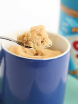 I just made this. Delicious compared to other recipes! I only put 1 1/2T of sugar, 1/2 a whisked egg, and added 1/8t. of baking soda also. Took about 1 minute split in half. A TRICK FOR MIXING: Mix dry ingredients in mug first, then add milk and egg and stir til smooth. Then add peanut butter and stir well until smooth. No lumps 🙂 Thanks for this recipe.