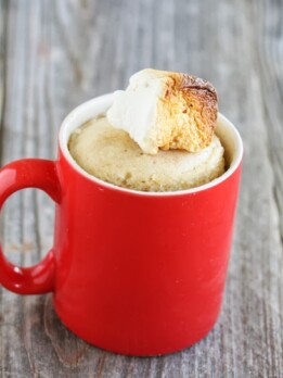 S’more mug cake is an easy 5-minute dessert for one with a sweet graham cracker cake, melted chocolate, and toasted marshmallows. It only takes a few minutes to make and cooks in one minute in the microwave.