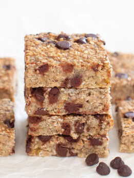 3 Ingredient Healthier Chocolate Chip Oatmeal Bars (No Flour, Eggs, Refined Sugar, Dairy, Butter or Oil)