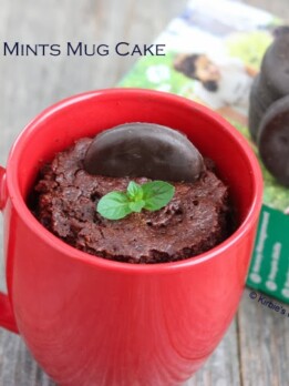 Before I devoured them all, I wanted to make a Thin Mints mug cake. The cake itself is chocolate and mint. I also added in actual mashed Thin Mints.