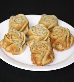 I’ve been trying to think of different variations on mochi cakes. The other night I was eyeing my Nordic Ware mini rose cupcake pan and thought it would perfect to make mochi roses.