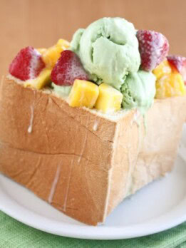 Then last year, I saw a trend in Taiwan where they took it to a whole new level and present you with an actual brick. It’s a huge brick of toast. The inside is hollowed out and cut into smaller bricks, which are sweetened, toasted and then put back in and layered to resemble a brick wall. The outside bread is toasted as well. It’s then topped with fresh fruit, ice cream and other toppings.